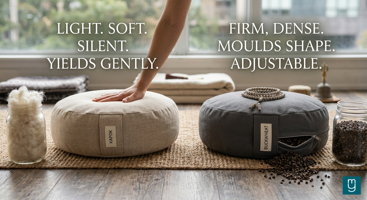 Filled with natural kapok — lighter than cotton fill, naturally mould-resistant, springs back after thousands of sessions.